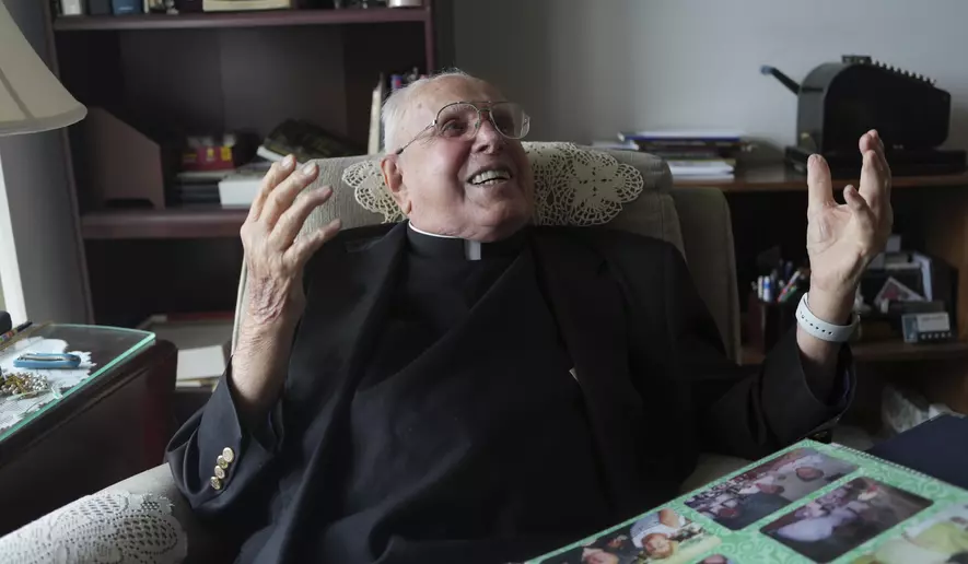 He points to other photos of the many ceremonies he proudly led during his 19 years as pastor of Saint Pius X Parish in Broomall, Pennsylvania, about 10 miles (16 kilometers) west of Philadelphia.