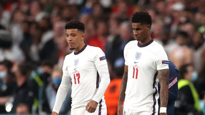 Three Black players who missed penalty kicks for England in the decisive European Championship shootout against Italy on Sunday night were subjected to racist abuse online, prompting the English Football Association to issue a statement condemning the language used against the players.