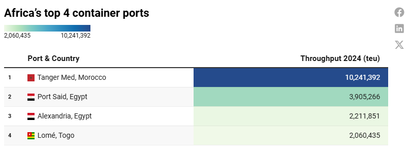 Togo’s Port of Lomé rounded out Africa’s representation at 92nd, reinforcing its emergence as a critical West African logistics hub.