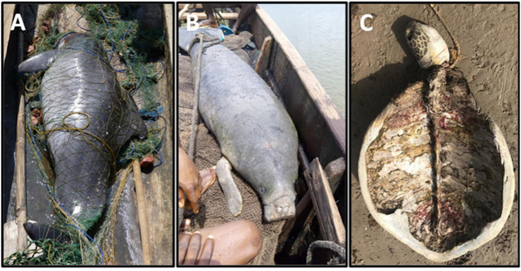 We’re part of a large international team of conservation researchers and practitioners that recently published a paper on this. We carried out a literature review on the use of large aquatic animals (excluding fish) – what we call “aquatic megafauna” – for wild meat in the global tropics and subtropics. This topic is hugely under-researched, so this review represents one of the most in-depth assessments of the topic to date.