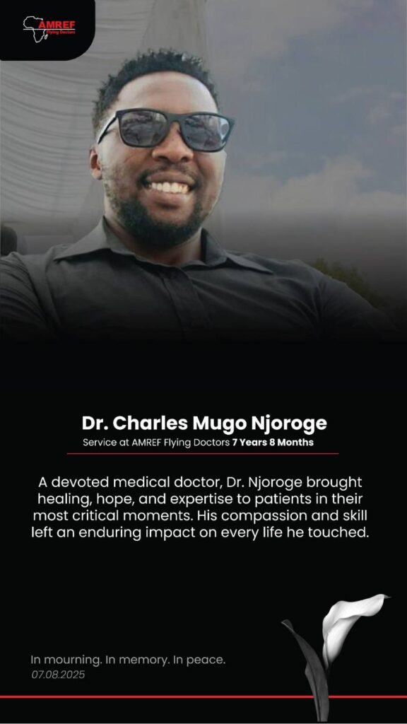 In the cabin, Dr. Charles Mugo Njoroge had served AMREF Flying Doctors for seven years and eight months. A devoted medical doctor, Njoroge specialised in bringing advanced medical care to patients during critical air transfers, often in remote or conflict-affected areas.