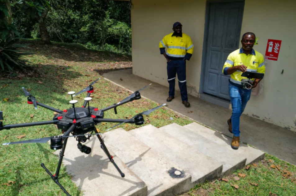 At the vast Tarkwa gold mine in southwestern Ghana, owned by Gold Fields, drones now fly daily missions across the 210-square-kilometer site. Equipped with high-resolution cameras, the unmanned aircraft have become the first line of defense against encroaching illicit miners.