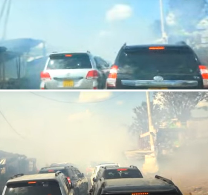 Police officers fired tear gas as opposition leader Raila Odinga’s entourage reached the Pipeline/Kware area of Embakasi South, Nairobi, just close to Outering Road.