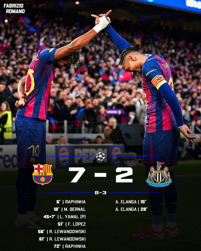 After an impressive first-half performance from Newcastle, Barcelona ran riot after the break at the Spotify Camp Nou to claim a 7-2 win on the night and progress to the UEFA Champions League quarter-finals as 8-3 aggregate winners.