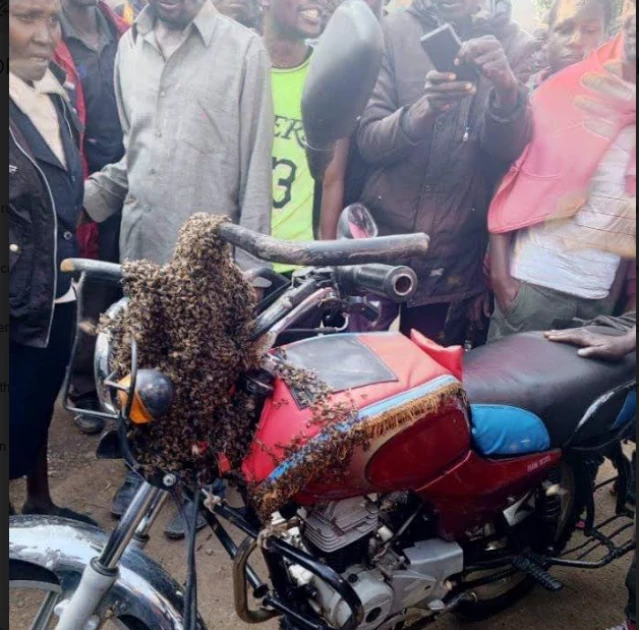 A Boda Boda rider in Bomet town is on the run after hundreds of bees swarmed over a bike he had parked in a petrol station.
