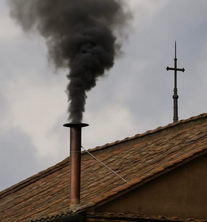 The black smoke — created by burning the ballots along with a chemical mixture — is a centuries-old symbol indicating that the voting Cardinals have not yet reached the required two-thirds majority needed to elect the next Pope.
