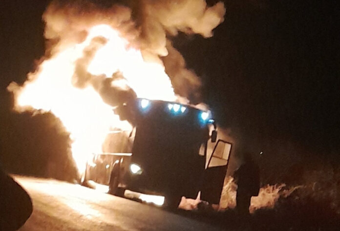 Videos showed thick smoke billowing from the bus as the firefighting efforts intensified.