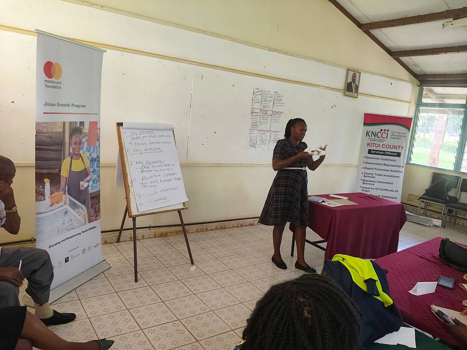 The MSEA Kitui Office, in collaboration with the KNCCI–Kitui Chapter under the Jiinue Growth Program, conducted two half-day training sessions for women- and youth-owned Micro and Small Enterprises (MSEs) in Kitui Central.
