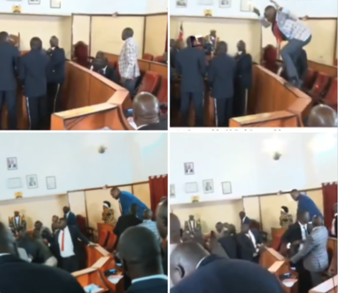 Chaos erupted in the Nandi County Assembly as Members of the County Assembly (MCAs) clashed and exchanged blows during a heated voting session on a Special Adhoc Committee report recommending the dismissal of nearly the entire county cabinet.