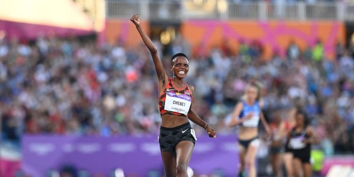The victory by Chebet, the 2018 World Under-20 5,000m champion, saw Kenya retain the 5,000m title Hellen Obiri won in 2018 Gold Coast.