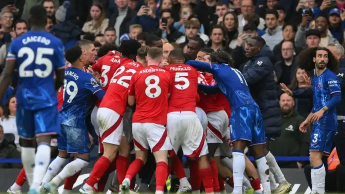 Chelsea and Nottingham Forest have been charged by the Football Association for failing to control their players after a mass confrontation during Sunday’s Premier League game at Stamford Bridge.