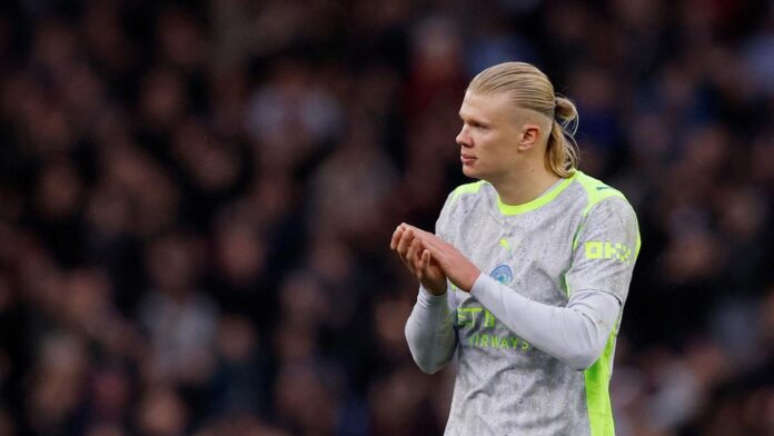 Haaland, who failed to score for the first time in 13 games for club and country in Sunday’s 1-0 Premier League defeat by Aston Villa, clattered into the post in the dying minutes.
