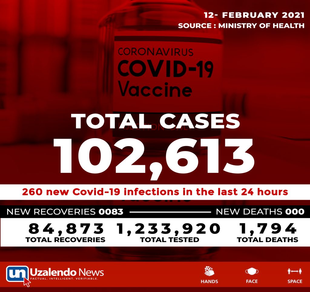 The Health Ministry has confirmed a further 260 people have tested positive of COVID-19 in the last 24hrs from a sample of 5,873. This brings the total caseload to 102,613. – By Gerald Gekara.