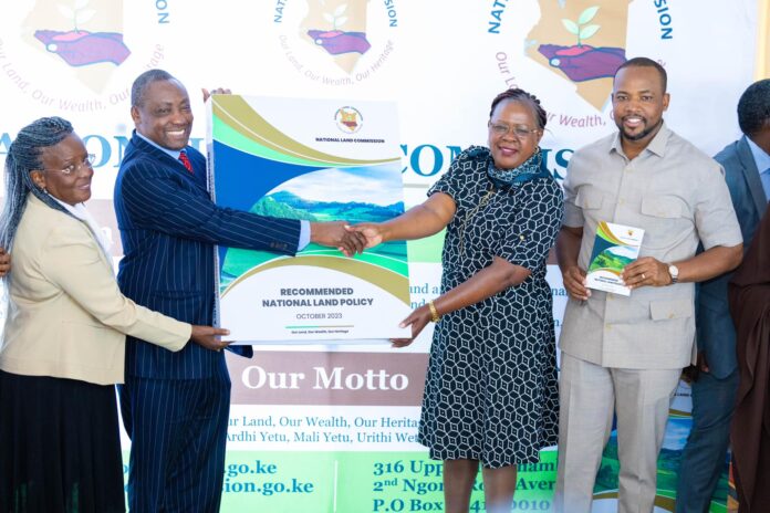 The National Land Commission, chaired by Mr. Gershom Otachi and CEO Ms. Kabale Tache Arero, presented land policy proposals to Cabinet Secretary Hon. Alice Wahome and Principal Secretary Hon. Nixon Korir in the presence of NLC Commissioners.