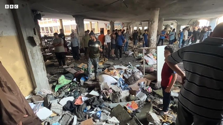 An Israeli air strike on a school building sheltering displaced Palestinians in Gaza City has killed dozens of people, Hamas-run authorities in the territory say.