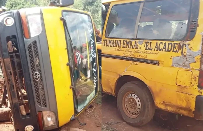 The school van, which belongs to Tumaini Emmanuel Academy, is said to have lost control and plunged into a ditch at Kibugu area in Embu.