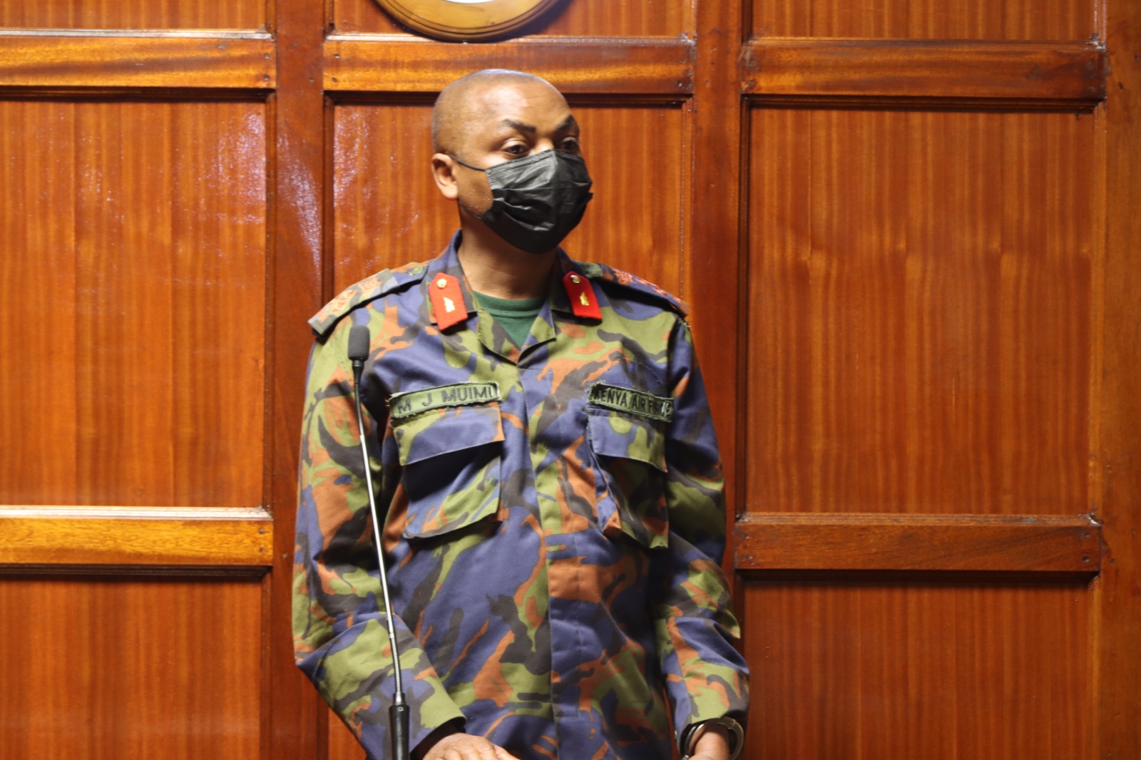 Police told the court that Mutwii was found dressed in full Kenya Air Force regalia, complete with a brigadier’s rank, a name tag reading M.J. Muimi and gorget patches.