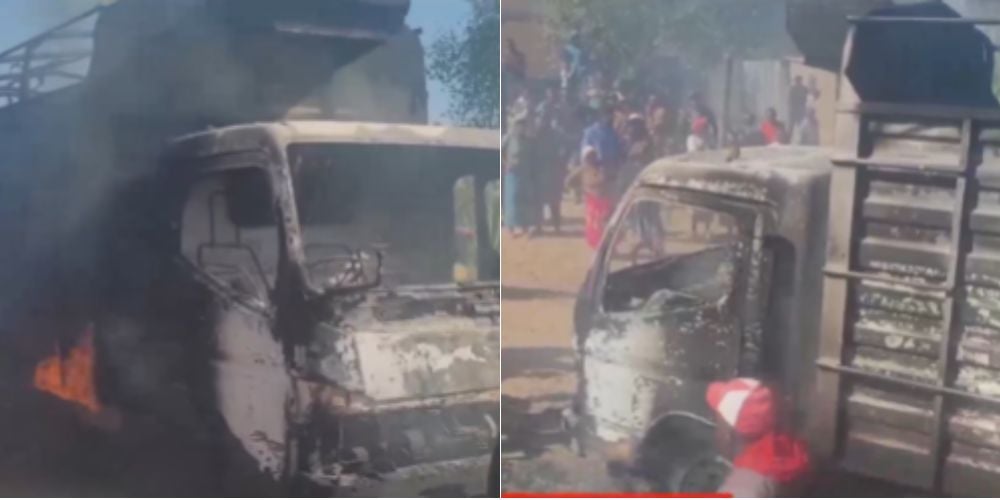 The suspects had been caught around 3 AM transporting stolen livestock in a lorry, which was also set ablaze by the furious residents.