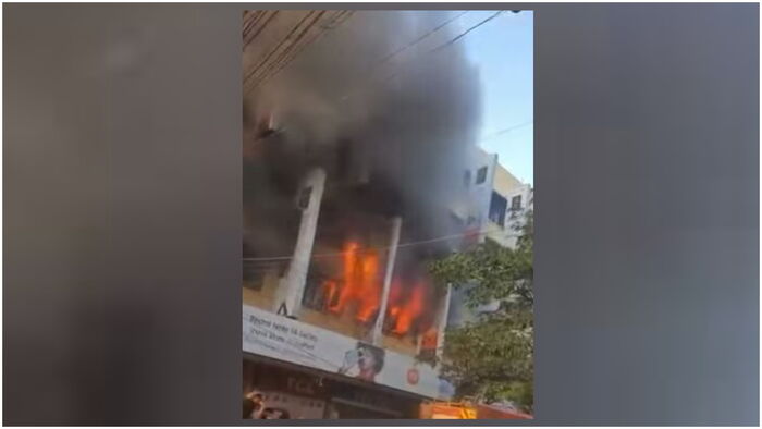 Clips circulating on social media showed business owners in surrounding areas moving quickly to close their shops, fearing the blaze could easily spread to the neighbouring buildings.