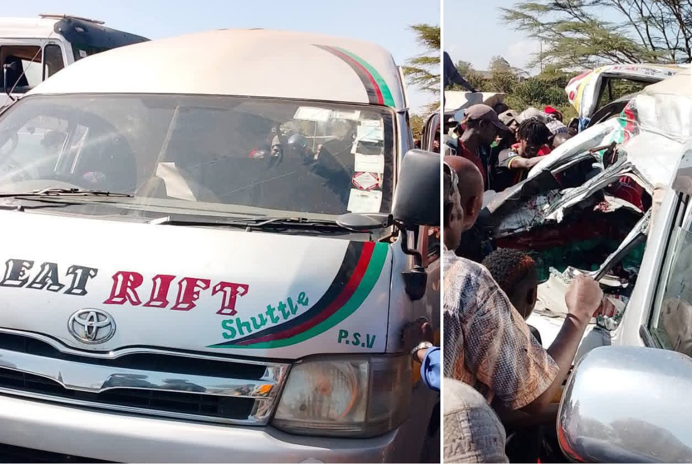 A Bungoma-bound matatu belonging to North Rift Shuttle was involved in a road accident at Kikopey after it was hit from behind by a truck that reportedly lost control.