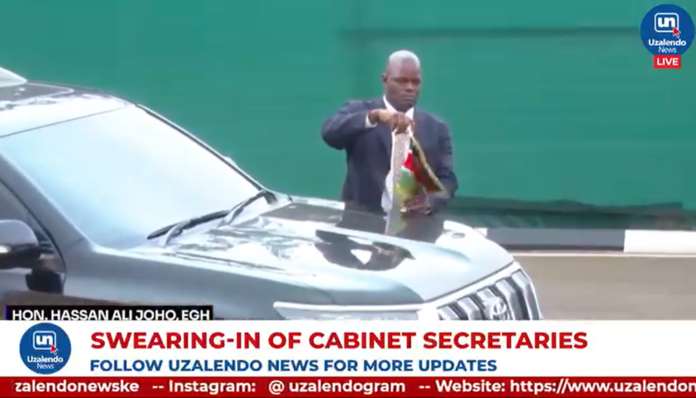 As soon as the newly appointed Cabinet Secretaries had completed taking their oaths of office, officials adorned the cars assigned to them with the Kenyan flag.