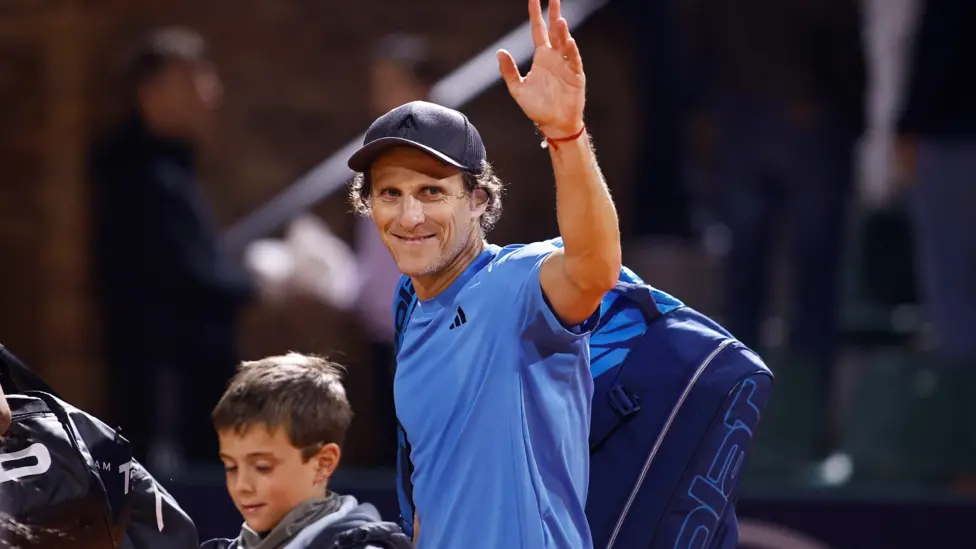 The former Manchester United and Atletico Madrid striker, 45, and Argentine partner Federico Coria lost to Bolivian pair Boris Arias and Federico Zeballos after receiving a wildcard for the Uruguay Open in Montevideo.