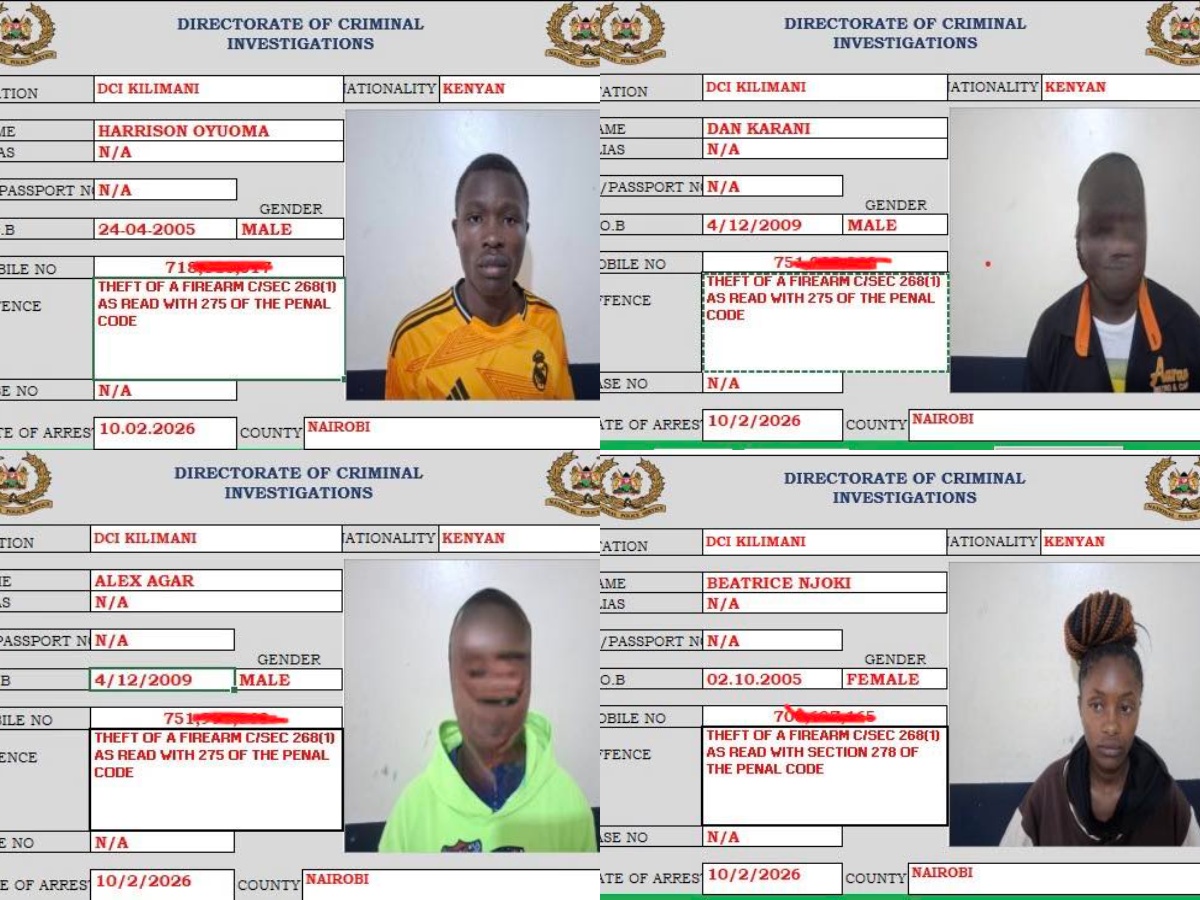 “There, the detectives pounced on four suspects: Alex Agar, Harrison Oyuoma, Dan Karani, and Beatrice Njoki. A search of their residence soon unveiled the stolen pistol, hidden but not well enough,” the statement further read.