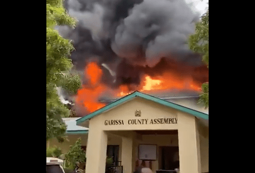 According to authorities, the fire started at Hansard offices at around 8.15am and it quickly engulfed the chambers. By the time firefighters from Garissa fire department arrived at 9am, the fire had generated to the offices.