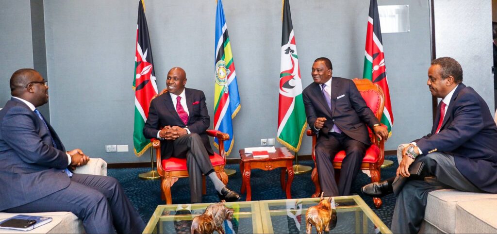 Kenya African National Union (KANU) Chair Gideon Moi met with Democratic Party (DP) leader Justin Muturi during the 2025 Democracy Union of Africa (DUA) Forum held in Nairobi.