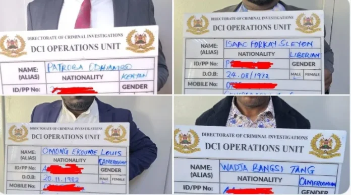 The suspects, identified as Patroba Odhiambo Tobias, Isaac Forkay Sleyon, Omong Ekoume Louis, and Wadja Bangsi Tang, were apprehended during a meticulously planned operation at a residence on Whispers Avenue in Gigiri, a neighborhood known for housing embassies, international organizations, and high-end properties.