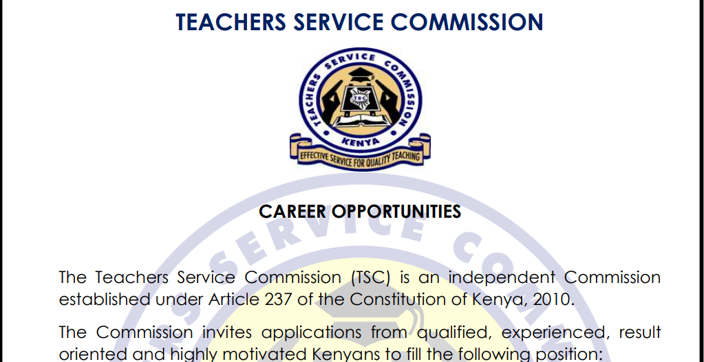 Applicants must submit their applications online via the TSC portal at www.teachersonline.go.ke by midnight on April 21.