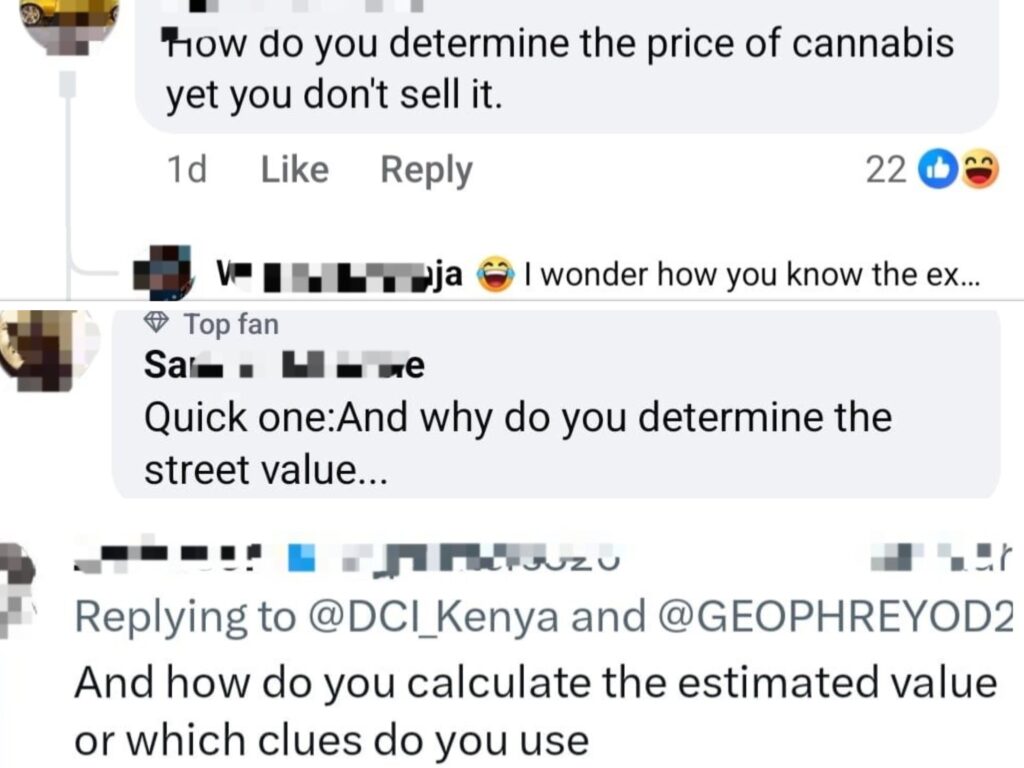 After many concerned citizens pointed this out ,the DCI, through a social media post, stated that through its Anti-Narcotics Unit (ANU), it uses a structured and evidence-based process to estimate the value of narcotic drugs seized during operations across the country.