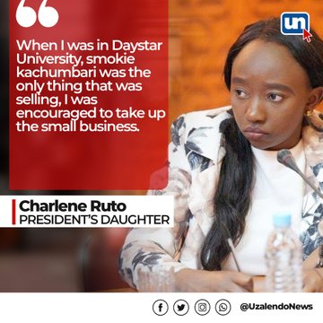 Charlene Ruto, President William Ruto’s daughter, revealed on Wednesday, December 7 that she sold smokie kachumbari at Daystar University.