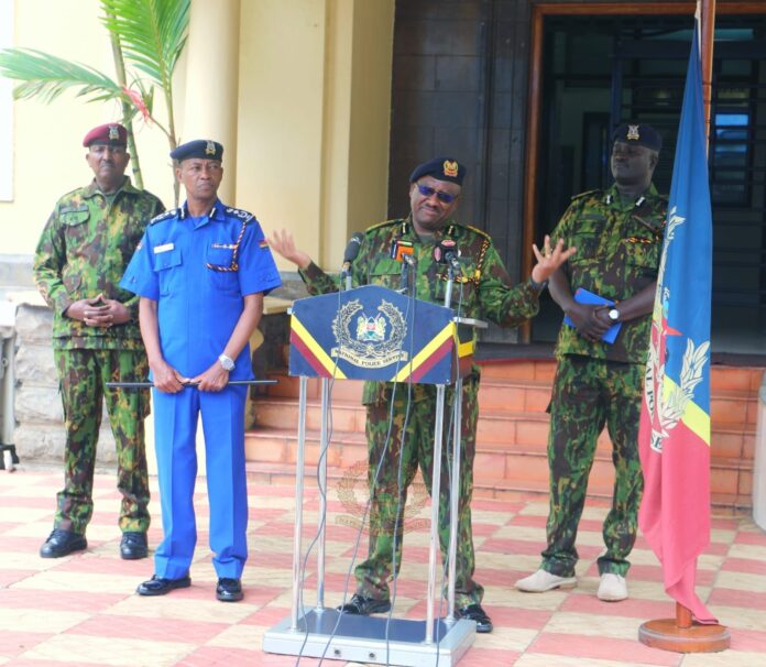 During the Press Brief, the IG was accompanied by the Ag. DIG Kenya Police Service, Mr. Abdallah Komesha, Director Personnel APS, Mr. Davis Lomwatu, SAIG, the Deputy Commandant GSU, Mr. Omar Bashane, AIG and Regional Police Commander Nairobi, Mr. Adamson Bungei, CP.
