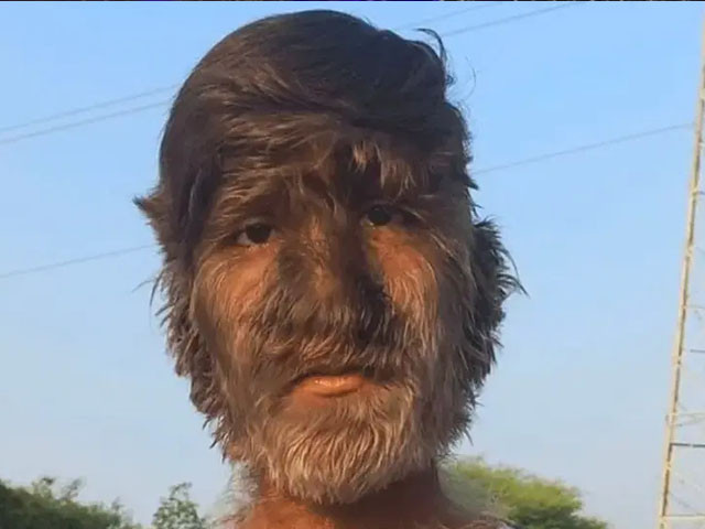 Lalit Patidar, who suffers from hypertrichosis, also known as “werewolf syndrome,” has 202 hairs per square centimetre covering more than 95% of his face.