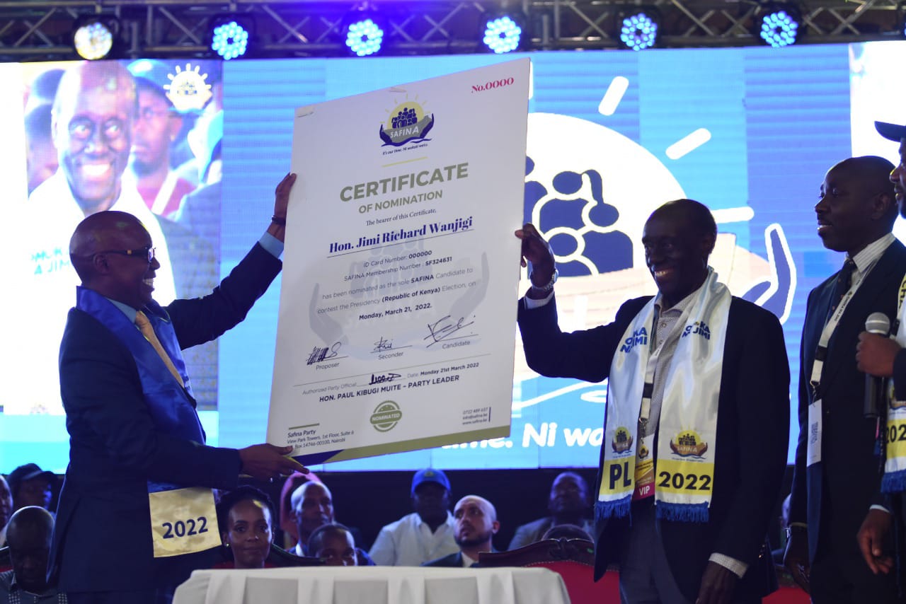 The Safina party has endorsed billionaire Jimi Wanjigi as their presidential candidate in the August General Election.