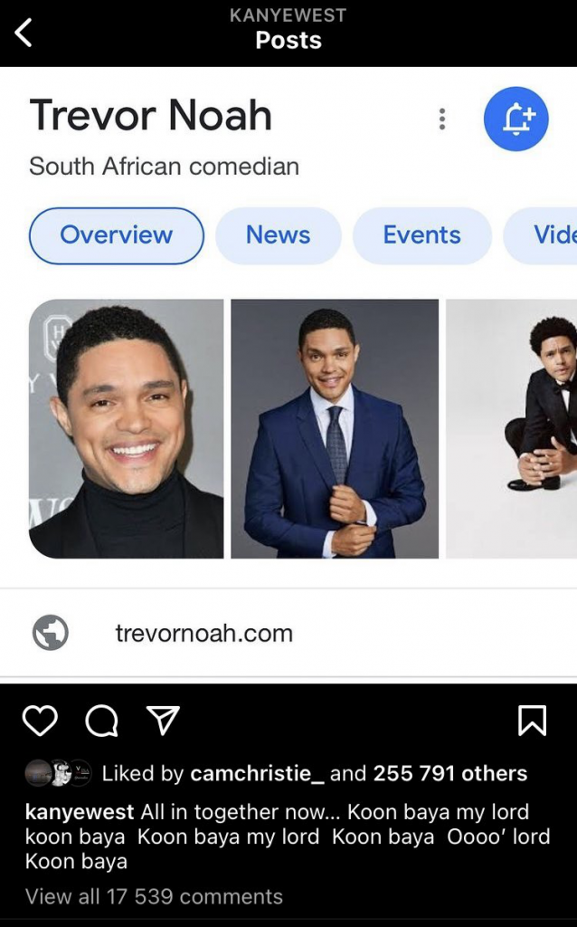 Prior to the removal of the post, Noah had responded by expressing his admiration for West as an artist and his sincere concern for him and his family.