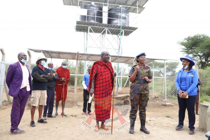 The finished Oloomaiyana Water Project has been handed over to the Oloomaiyana community in Kajiado County by the Kenya Defence Forces in collaboration with the Rotary Club of Nairobi – Lang’ata.