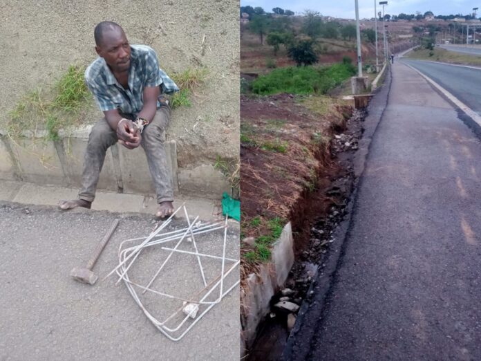 The Kenya National Highways Authority (KeNHA) arrested a suspect caught vandalizing reinforcement bars along the Miritini-Kipevu road.
