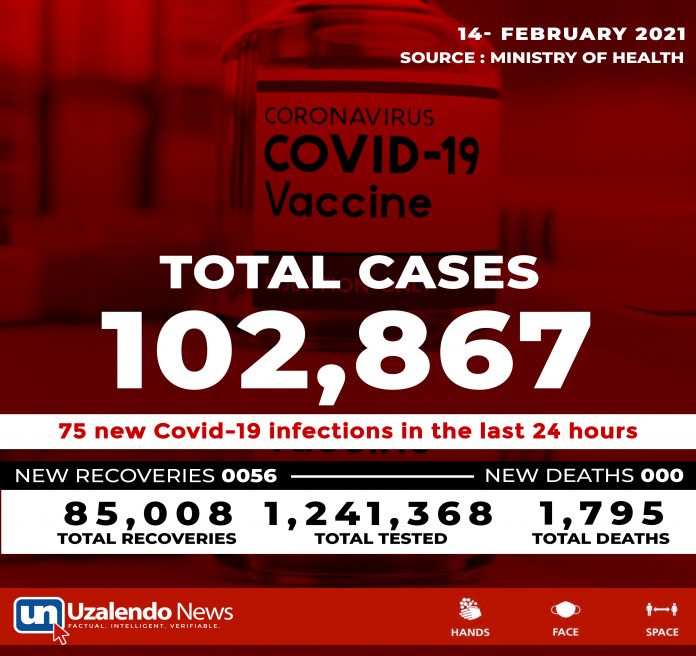 75 people have tested positive to the disease, out of a sample size of 3,025 tested in the last 24 hours. The total confirmed positive cases are now 102,867.
