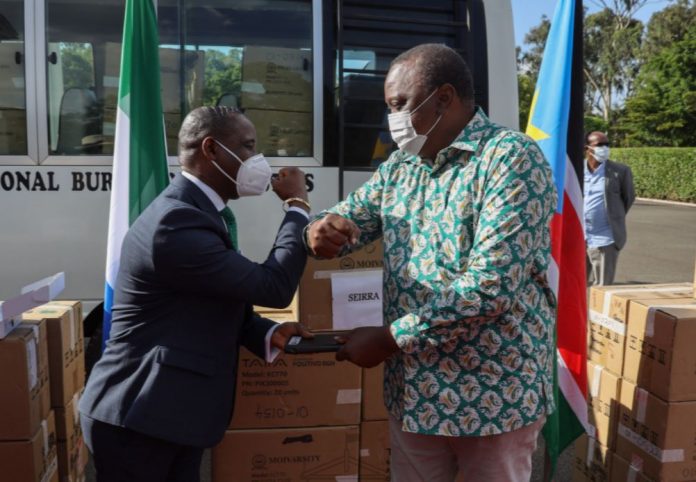 NAIROBI, 1st April 2021 (PSCU) – President Uhuru Kenyatta today presented 45,000 Kenyan made gadgets to Botswana, South Sudan, Mauritius, Sierra Leone and Namibia to help them undertake their census.