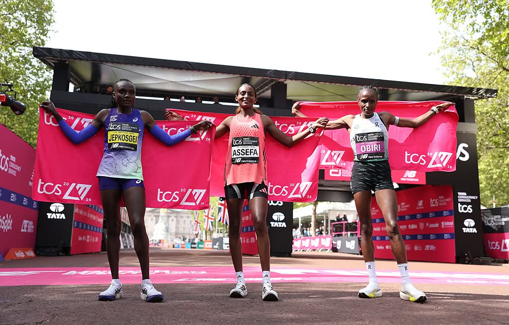 Kenyans Hellen Obiri, Joyciline Jepkosgei settle for 2nd & 3rd respectively as Ethiopian Tigist Assefa wins 2026 London Marathon in 2:15:40, her second in a row.