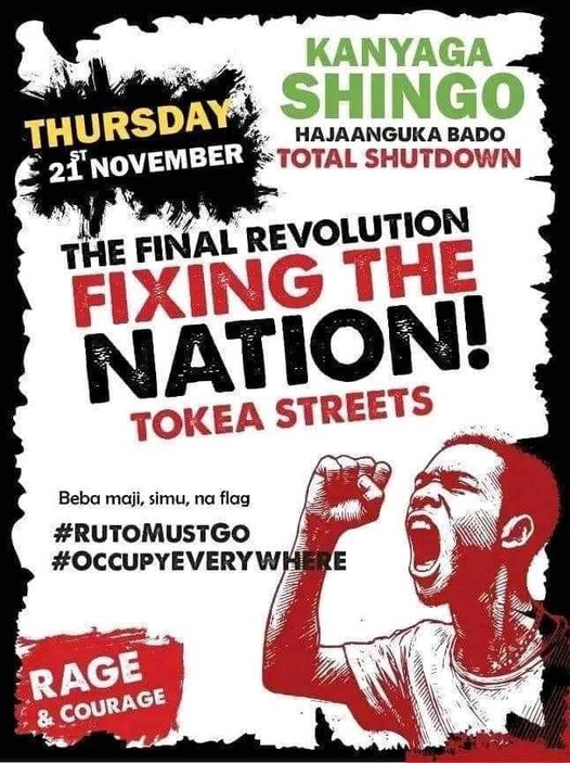 The demonstrations, dubbed “The Final Revolution”, will coincide with Ruto’s second State of the Nation address on Thursday, November 21, 2024.