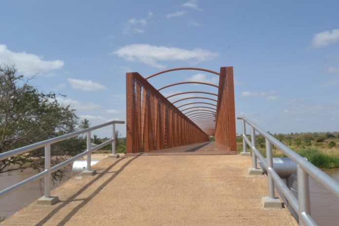 The national government has finished the construction of a footbridge in Magarini , Kilifi county that is expected to end plight of villagers who suffered reptile attacks while crossing River Galana. – By Ramadhan Kambi.