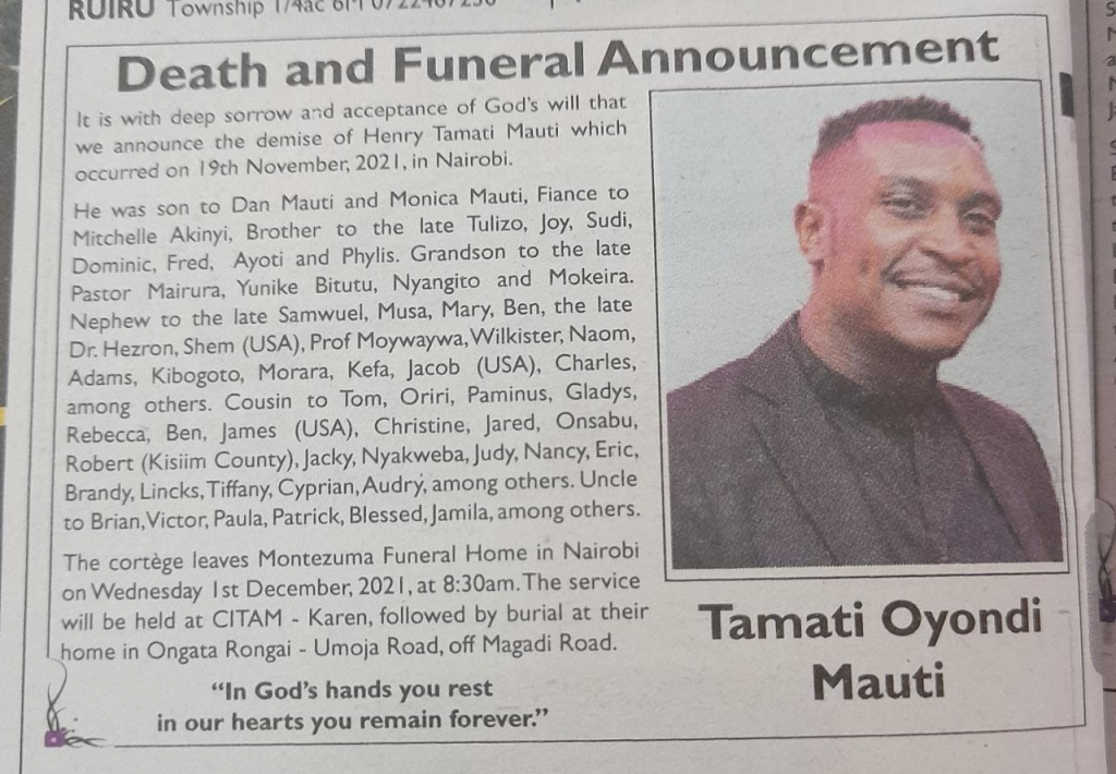 Mauti allegedly killed the Briton in a Kileleshwa hotel, then committed suicide or was murdered by third parties.
