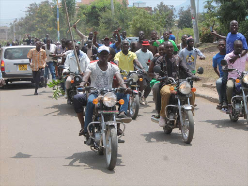 The enraged bodaboda riders cornered one of the thugs who had jumped from the escape bike as the culprits approached stage 87.