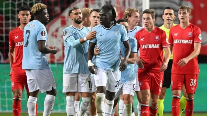 Lazio winger Loum Tchaouna was substituted after being racially abused by fans during his side’s Europa League win against Twente on Thursday.