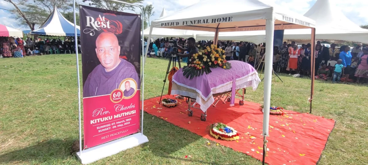 The late Rev. Charles Kituku Muthusi, the preacher found murdered inside a maize plantation in Kawethei, Machakos County, a week ago, has been laid to rest, as it has emerged that the main suspect is his nephew.