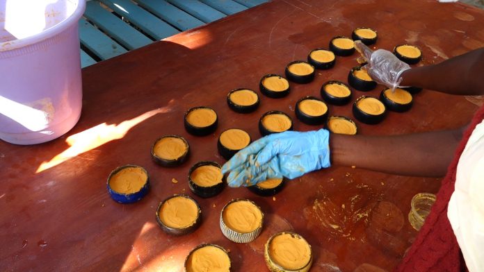 “Like this one today we have used pawpaw leaves, boiled them and got its juice and measured 15 cups, mixed with two cups of caustic soda and stirred them for 35 minutes until it cooled down,” she said.