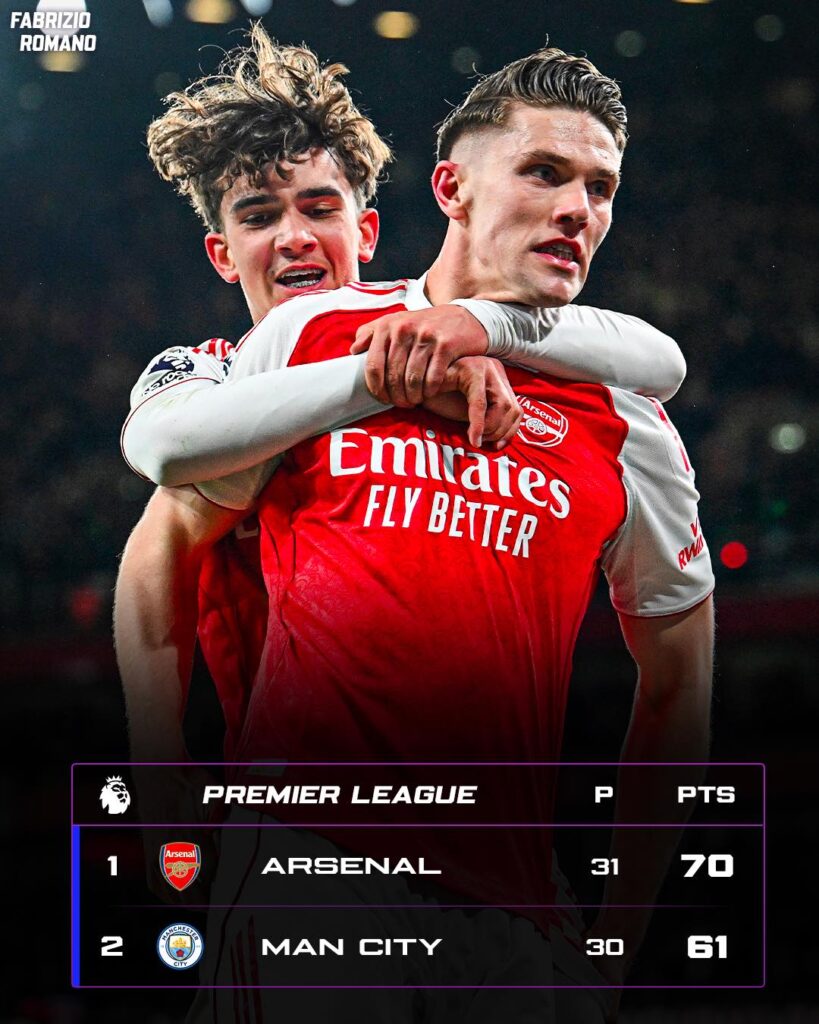 After Arsenal left it late to beat Everton 2-0, Bernardo Silva put City ahead in the 31st minute with a fortunate chip over goalkeeper Mads Hermansen, before Konstantinos Mavropanos headed home Jarrod Bowen’s corner four minutes later.